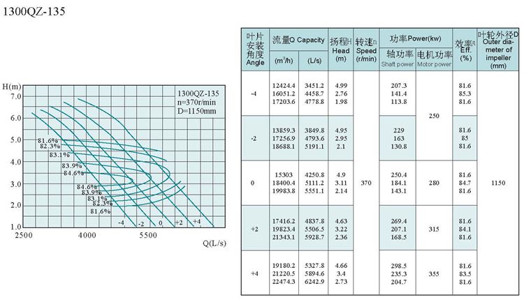 QZ系列潜水轴流泵1300QZ-135是传统的轴流泵——电动机机组的更新换代产品。由于电机号与水泵构成一体,潜入水中运行,具有传统机组一系列无法比拟的优点。由于电机与水泵构成一体,无需在安装现场进行耗工、耗时复杂的轴线对中装配工序,现场安装十分方便。由于潜入水中运行,可以大大简化泵站的土建及建筑工程,减少安装面积,节约泵站的工程总造价30-40%。泵在水中运行,水流从电机周围通过,噪声低,电机冷却条件好。如有必要可以建设地下泵站,保持地面的环境风貌。操作方便、运行可靠、维护保养方便。采用轴流潜水电泵是解决在水位涨落大的沿江、湖泊地区建泵站和防洪问题彻底的方法,省去了机泵间的长轴,提高运行安全可靠性。该泵广泛适用于工农业输送、城市给水、轻度污水排放和调水工程。