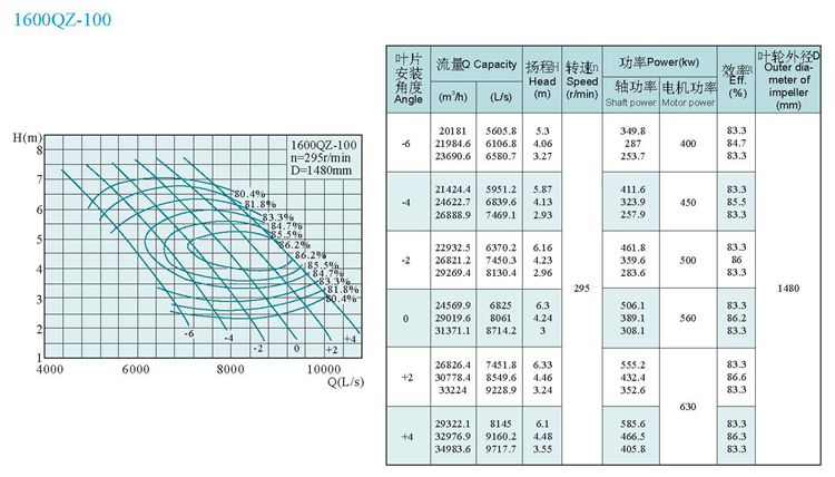 QZ系列潜水轴流泵1600QZ-100是传统的轴流泵——电动机机组的更新换代产品。由于电机号与水泵构成一体,潜入水中运行,具有传统机组一系列无法比拟的优点。由于电机与水泵构成一体,无需在安装现场进行耗工、耗时复杂的轴线对中装配工序,现场安装十分方便。由于潜入水中运行,可以大大简化泵站的土建及建筑工程,减少安装面积,节约泵站的工程总造价30-40%。泵在水中运行,水流从电机周围通过,噪声低,电机冷却条件好。如有必要可以建设地下泵站,保持地面的环境风貌。操作方便、运行可靠、维护保养方便。采用轴流潜水电泵是解决在水位涨落大的沿江、湖泊地区建泵站和防洪问题彻底的方法,省去了机泵间的长轴,提高运行安全可靠性。该泵广泛适用于工农业输送、城市给水、轻度污水排放和调水工程。