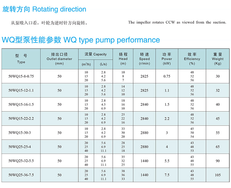 WQ50口径系列潜水排污泵