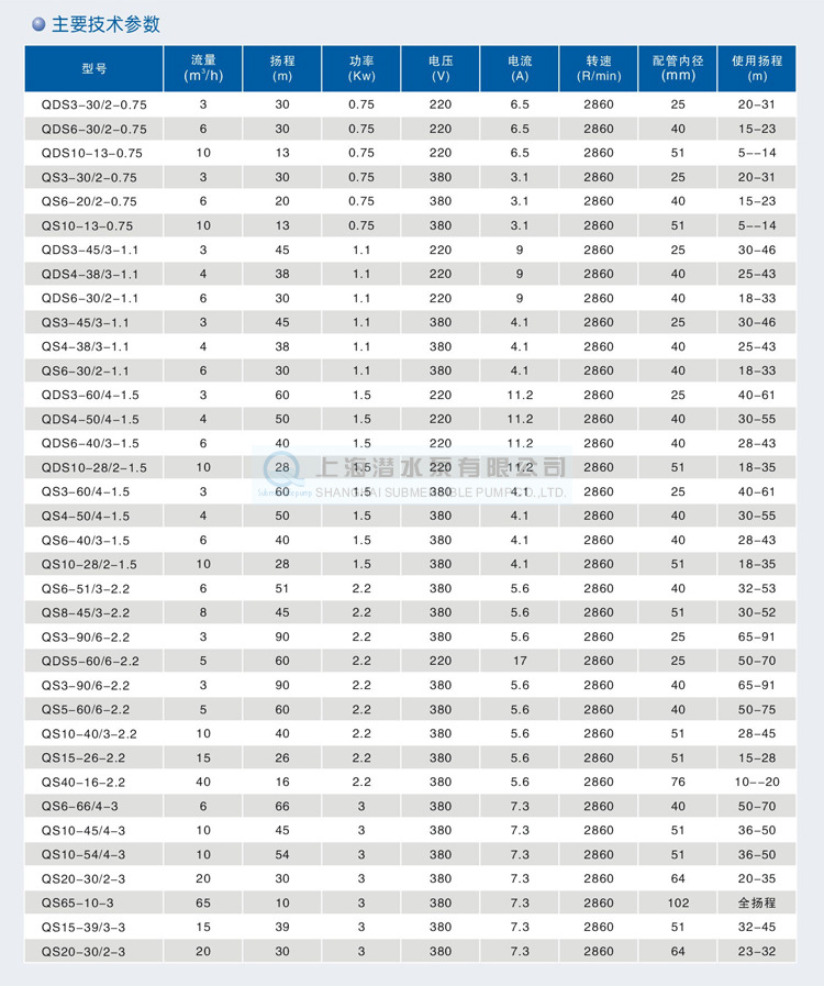 - QS充水式潜水电泵