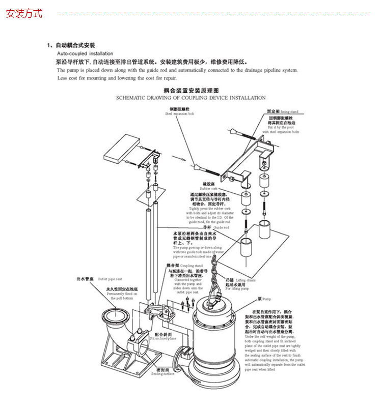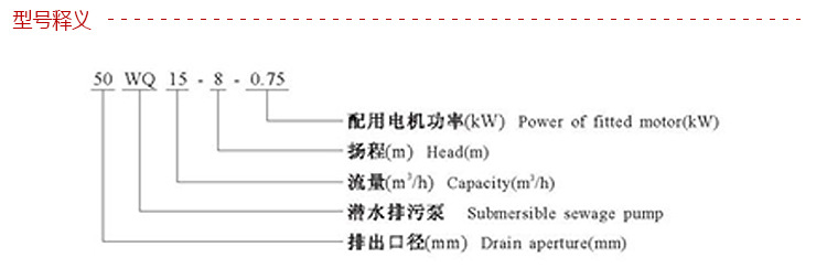 7、WQ系列铸铁无堵塞排污泵(WQ系列铸铁潜水排污泵潜水泵50WQ15-8-0.75)可根据用户需要配备双导轨自动耦合安装系统,它给安装、维修带来更大方便,人可不必为此而进入污水坑。