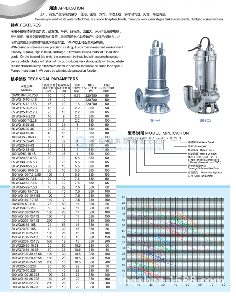 产品分类: WQ(D)无堵塞污水污物潜水电泵