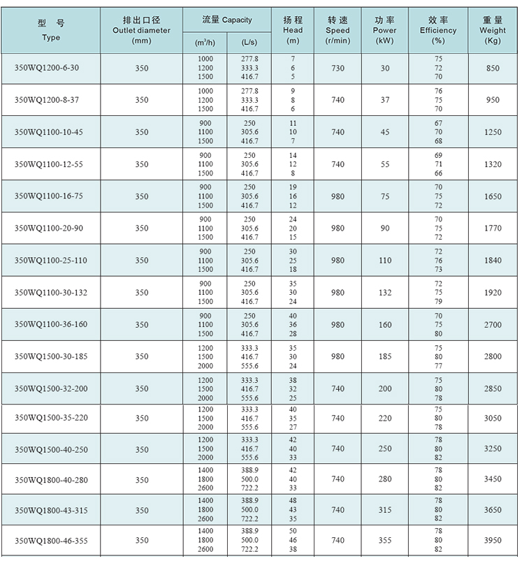 WQ350口径系列撕裂装置污水污物潜水电泵
