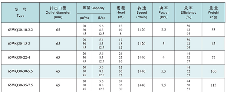 WQ65口径系列潜水排污泵